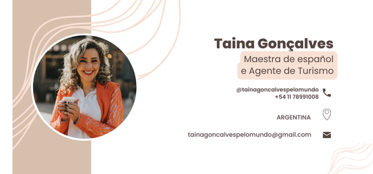 É um prazer poder apresentar para você os meus cursos de espanhol. Sou Taina Gonçalves, professora de espanhol e agente de turismo especializada em auxiliar brasileiros que desejam aprender o idioma de forma prática e eficaz. Trabalho de duas formas para atender às suas necessidades: